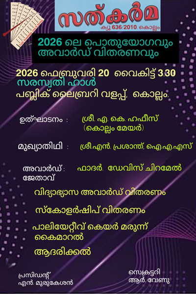 The new office of Sathkarma Charitable Organization was inaugurated by Hon. Mayor Smt. Honey Benjamine on 26/10/2020 Monday at 6 P.M in the presence of, M.S.Gopakumar, Division Councillor, Adv. T.Reghunathan Nair, President Sathkarma and K.Sivankutty Nair, Secretary Sathkarma.